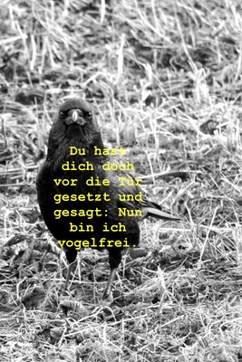 Auf Buchstaben gehen. Zusammenfügen, was vielleicht gar nicht zusammengehört. Zwischenräume achten. Doch nicht fliegen können. Bisweilen auf den Zeichen sitzenbleiben. Ungefragt. Fliehende Zeit. Zusammengefügtes auseinanderfallen sehen. Auf Buchstaben gehen. Sie mit fliegenden Armen einfangen. Als ob es Schmetterlinge wären. Und sie deshalb nicht festhalten können. Auf Buchstaben gehen. Zwischenräume umgeben Zusammengefügtes. Schmetterlinge suchen das Licht. Bisweilen drängt unerhört dicht das Dunkel herauf. Auf Buchstaben gehen. Ein Springen ohne Sicht.